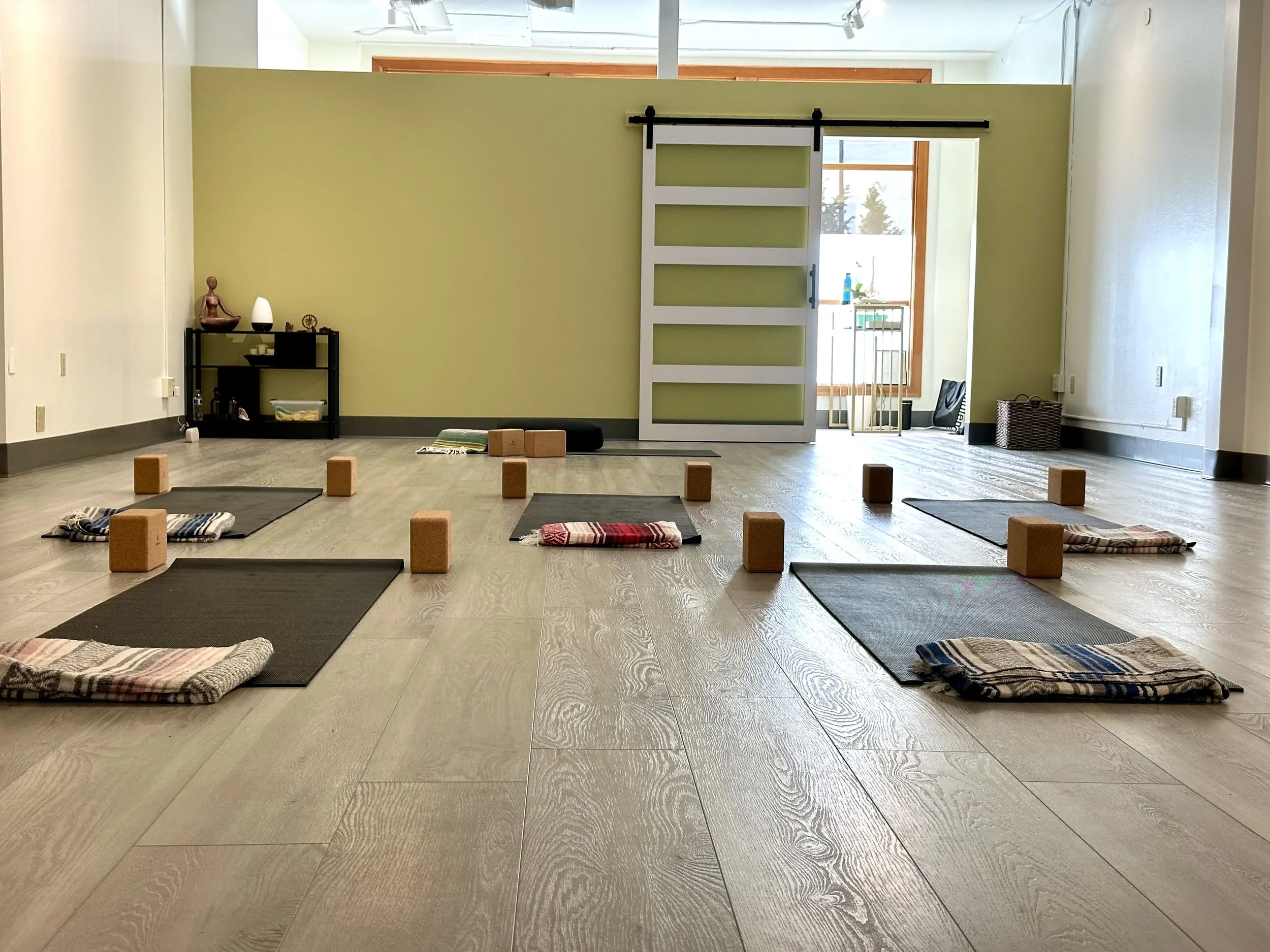 Location - you can come to us, or we can come to you! (We have yoga mats, blocks, bolsters, and blankets at the studio)